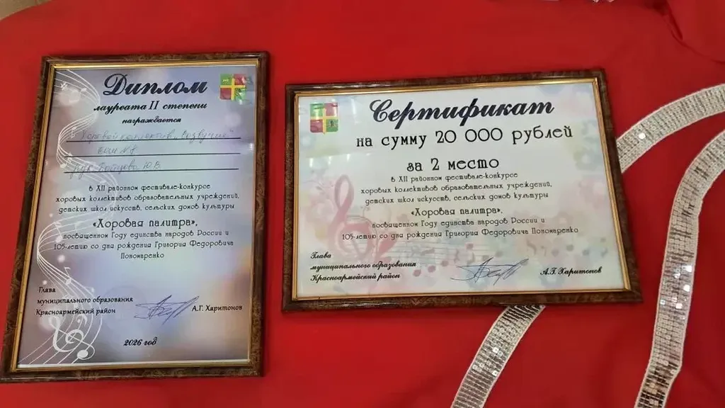 Результат: 2 МЕСТО среди школьных хоровых коллективов! «Созвучие» заметили и отметили по-особенному: костюмы, манеру пения, подачу голоса, двухголосие и вокализ. Выражаем слова благодарности руководителю хорового коллектива - Юлии Владимировне Бойцовой! И, конечно, приятное материальное подкрепление таланта: 💰 Сертификат на 20 000 рублей