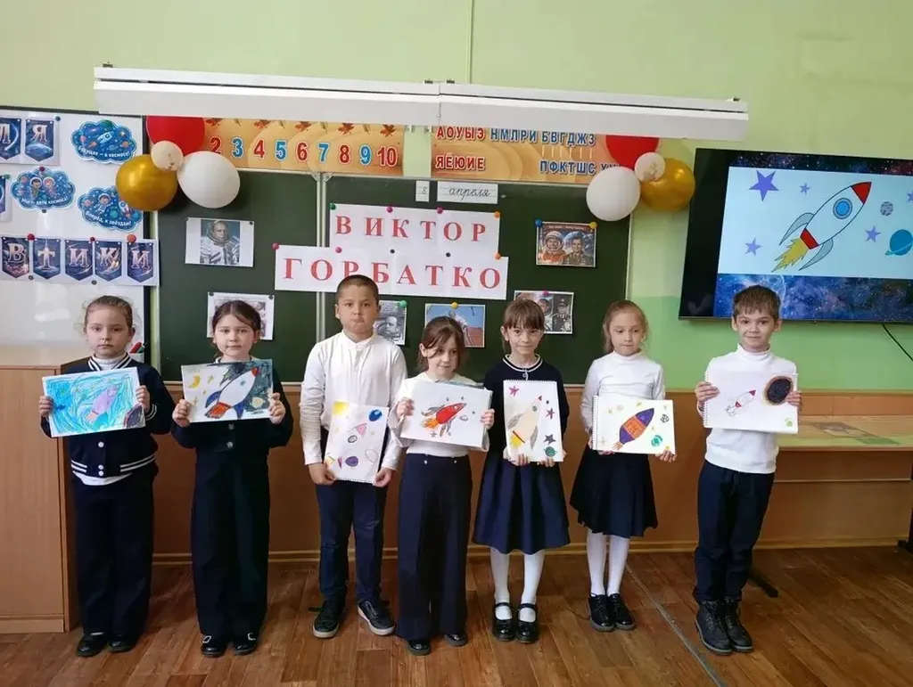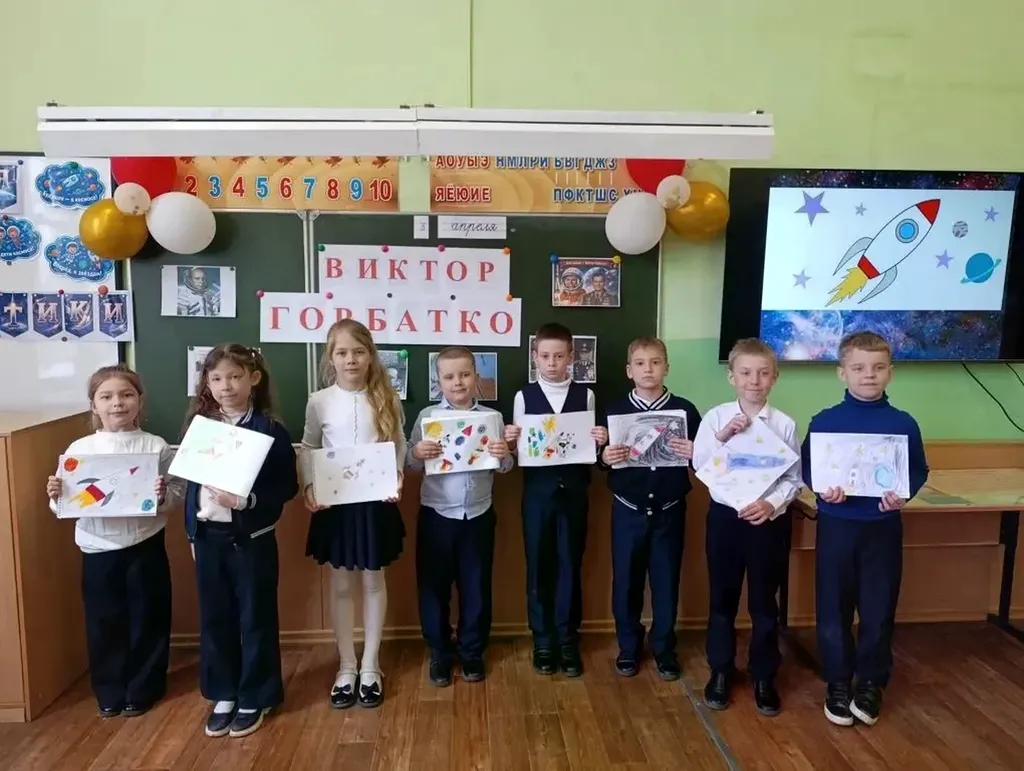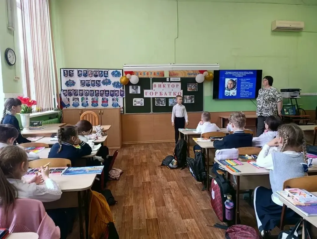 В преддверии Дня космонавтики в 1 «А» классе прошел урок мужества: "Мужество покорителей космоса. Наш земляк- Виктор Горбатко".