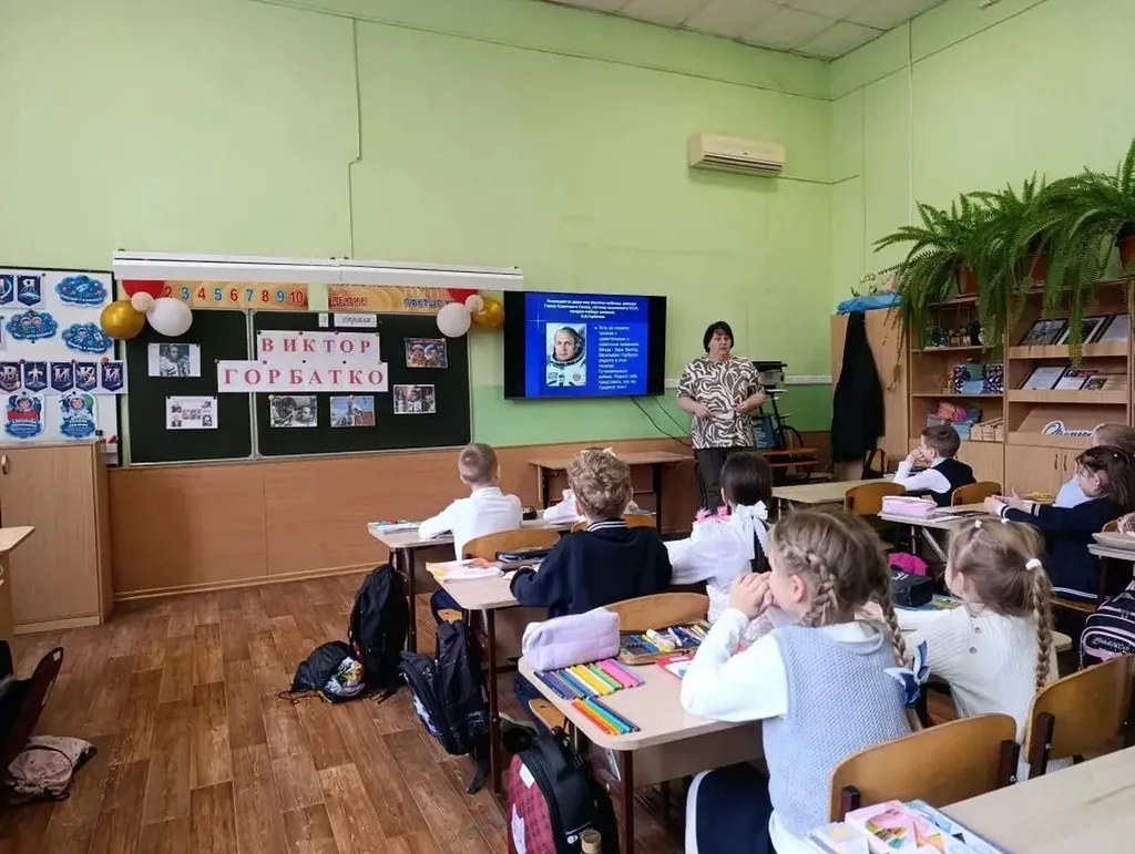 Дети узнали о летчике-космонавте Викторе Горбатко — дважды Герое Советского Союза, нашем земляке. Простой парень из Краснодарского края, Виктор Горбатко, совершил три орбитальных полёта и работал на станциях «Союз». В. Горбатко всегда возвращался на малую родину и учил нас главному: мужество — это не отсутствие страха, а умение идти вперёд, несмотря на него.