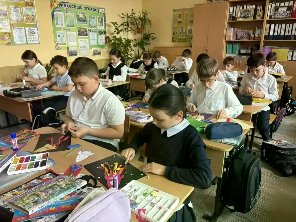 Из простой бумаги и клея у учеников получились яркие, аккуратные поделки.
