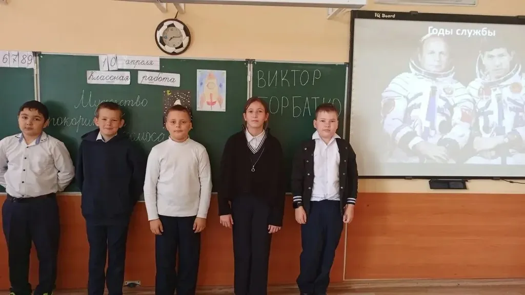 В 4 «Д» классе на Уроке мужества поговорили с учениками о мужестве космонавтов и нашем герое-земляке — Викторе Горбатко.