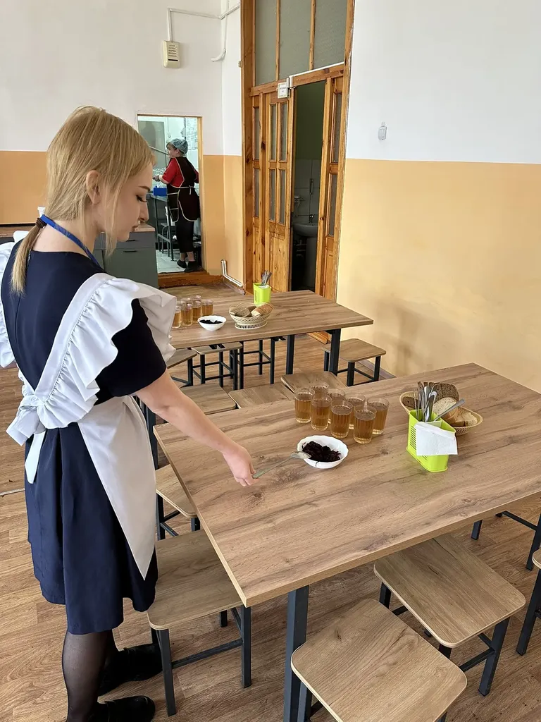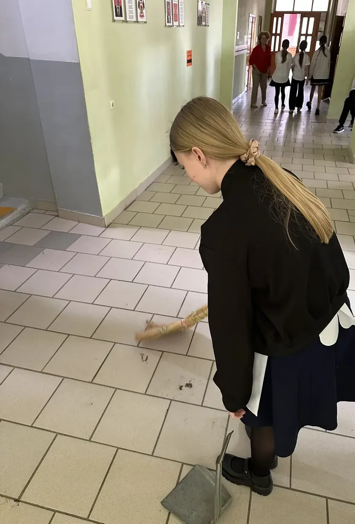 Привет! На этой неделе в первой смене дежурили мы — 11 «А» (и наш классный руководитель В.Л. Чабан). Что мы делали? Встречали всех на входе, даже опоздавших, помогали в столовой, следили за порядком в гардеробе и коридорах, убирали мусор.
